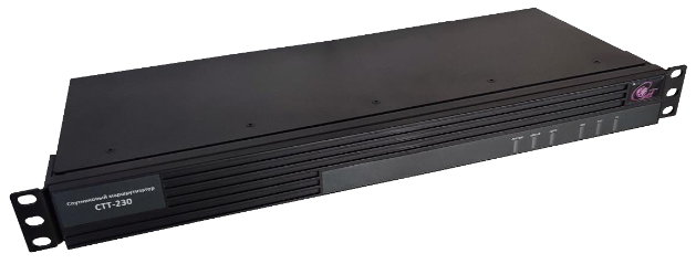 - CTT-230 / CTT-240 Спутниковые маршрутизаторы в корпусе для 19’ стоек предназначены для организации каналов связи с использованием искусственных спутников Земли и представляет из себя программно-управляемые устройства, функциональное назначение которого определяется программным обеспечением (ПО), установленным в него.